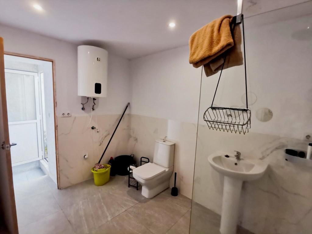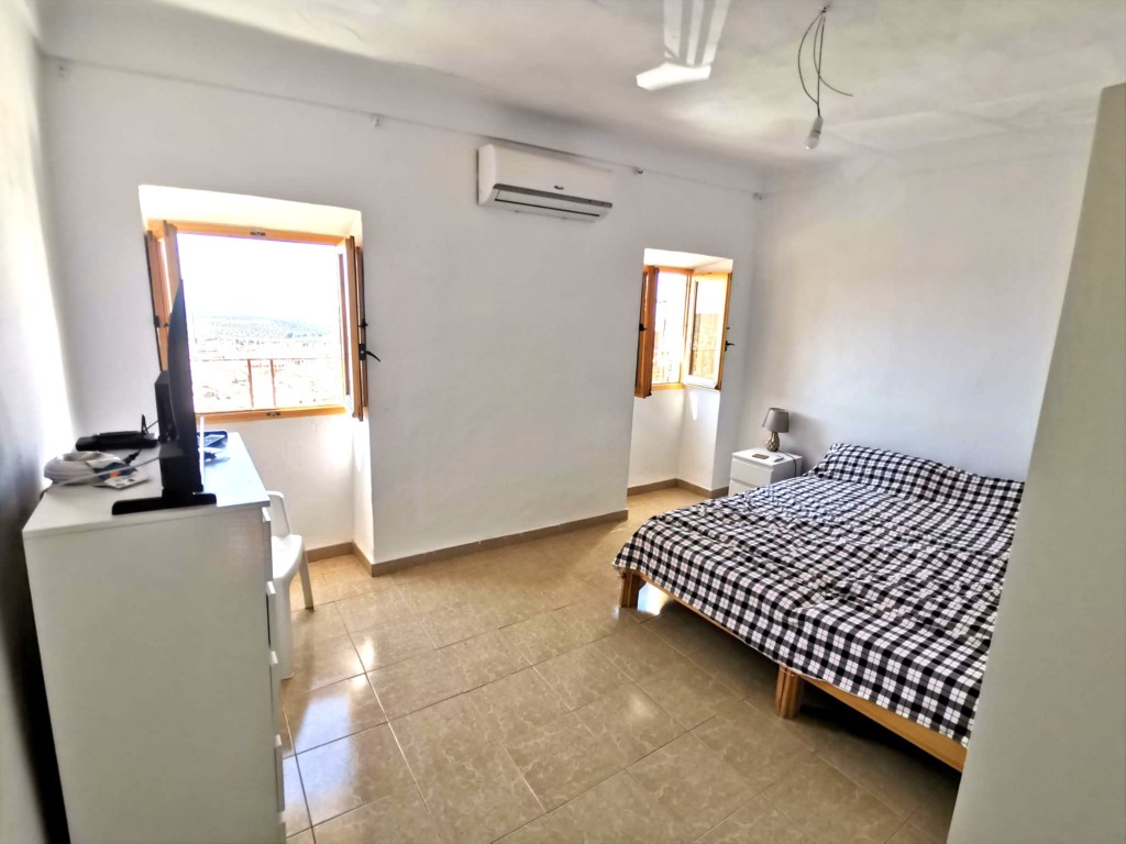 From the kitchen, steps lead out to the property’s wonderful tiered outdoor terrace spaces. The first raised terrace is beautifully tiled with traditional Andalucian tiles and provides a comfortable seating area. A few steps further lead to a second raised terrace, backed by a charming mountain-style wall. From this level you can enjoy views across the town and towards the surrounding mountains. These terraces offer fantastic potential for outdoor dining, barbecues, planting areas, or even installing a small pool or jacuzzi, making them perfect spaces for relaxing and soaking up the warm Spanish sunshine.