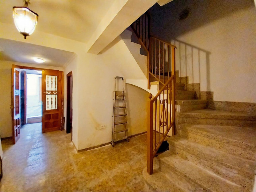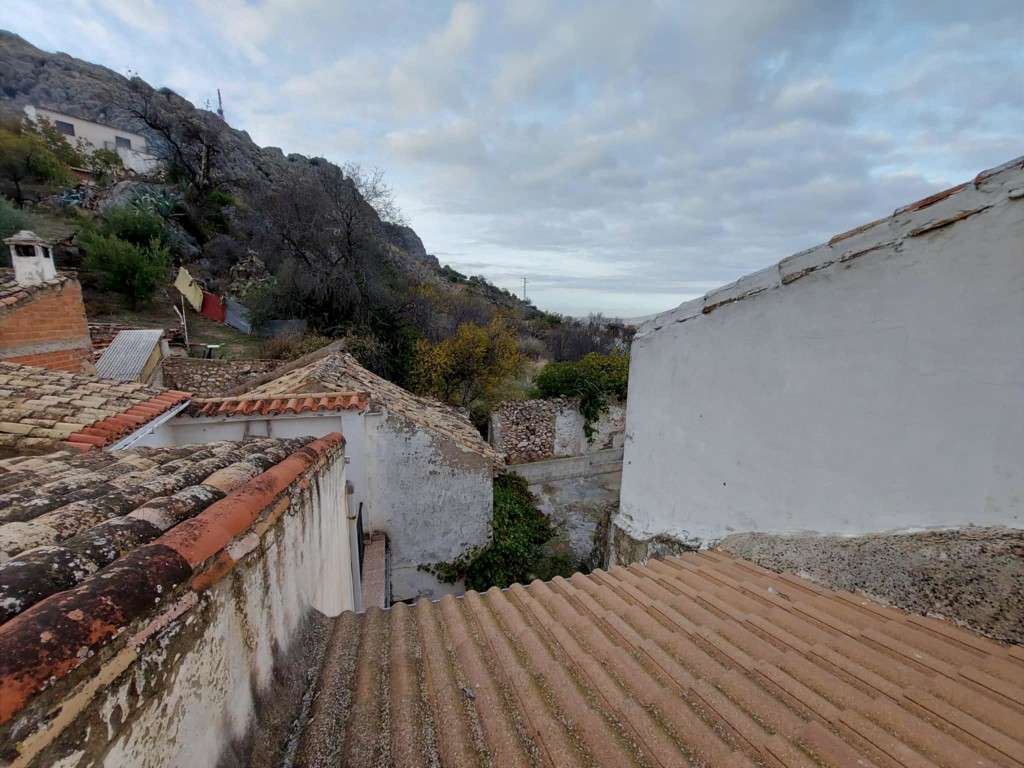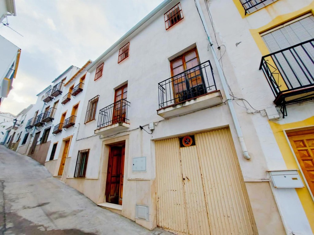You enter the house through a set of impressive original wooden double doors into a welcoming hallway decorated with traditional Andalucian tiles. The ground floor includes a bright bedroom that could also be used as an office or additional sitting area, a cosy lounge with a fireplace, a modern fully fitted kitchen with pantry, and a bathroom with shower. From here, there is direct access to a large rear patio, the garage and utility area, and a substantial garden offering lovely open views – an exceptional bonus for a property in the centre of the village.
